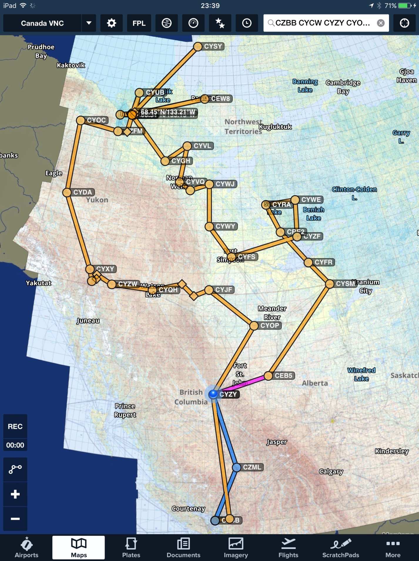 Disturbing thing coming to the Lower Mainland was the traffic. Vancouver terminal controller right away told me to stay away from his space because he is too busy, and Pitt Meadows guy pointed out three potential traffic conflicts right away. In the North, we were the entertainment of the week (or month?) for any traffic advisor up there! And seeing no other planes for hundreds of miles…